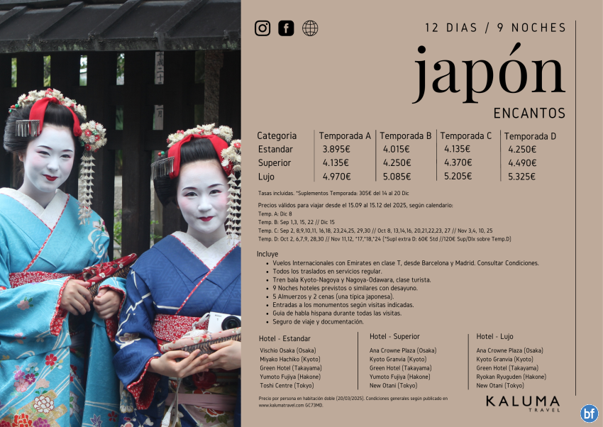 Encantos de Japón 12 días / 9 noches - Salidas Garantizadas hasta Diciembre desde 3.830 €