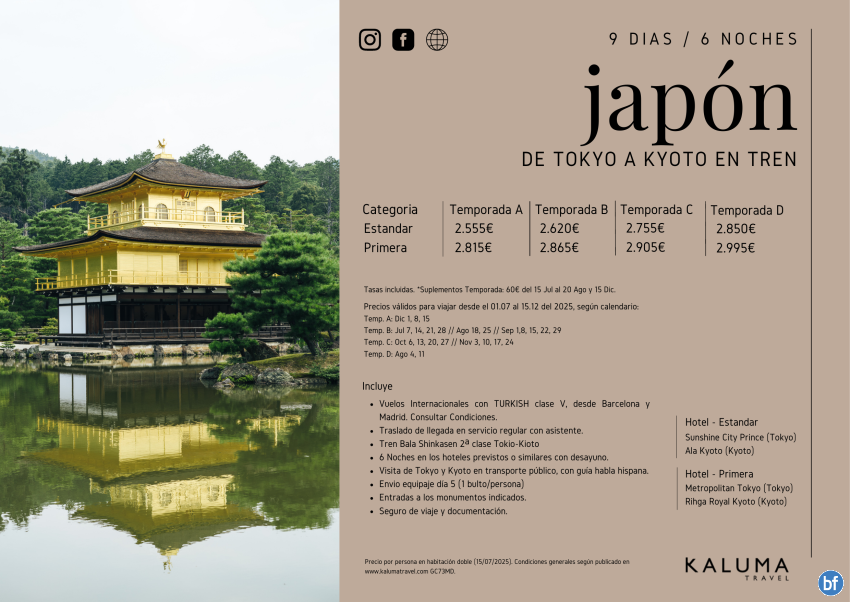 Japón de Tokyo a Kyoto en tren 9 días / 6 noches - Salidas hasta Diciembre desde 2.555 €